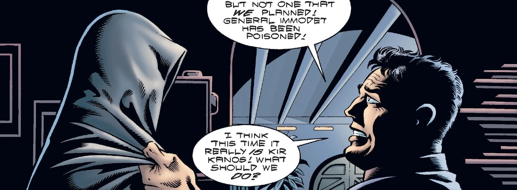 Attempting to break the impass, Omas offered Quis a seat on the Commerce Council in return for his support but this was still not enough to win the election. The arrival of the Smugglers' Alliance changed the election considerably as their leaders Lando Calrissian and Talon Karrde decided to help Omas out and they made donations to some of Rodan's more questionable supporters. In the second vote, Omas and Rodan were level, leaving Ranth with the choice of who would be elected. Supreme Overlord Shimrra, fearing that Omas's election would ruin his plans for a quick victory, ordered that he should be assassinated.[7]