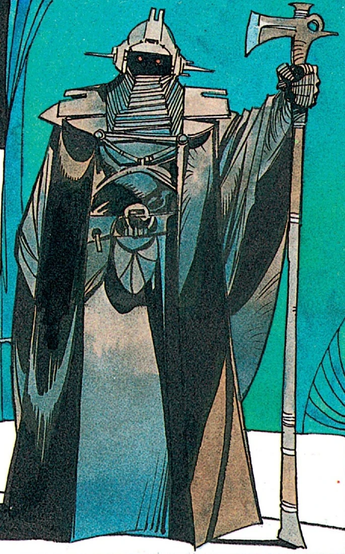 Darth Sidious created a special unit of cloned, mutated guards called the Imperial Sentinels who possessed the titanic stature of Magnus, as well as garments, armor, and weaponry of similar appearance to those worn by him.[2]